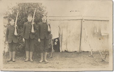 The Army![]() Photograph showing men volunteering to fight in the First World War. Image taken from The Times History of the War Vol V, (DUL ref: XX+355.9403) The Growth of Army When war broke out in 1914 Britain had a small, professional army consisting of 125,000 officers and men. This was easily dwarfed by both her allies and her enemies. France had a standing army of 700,000 with the ability to grow to 4.2 million by calling up Territorials and Reserves; Germany had the immediate service of 840,000 men with the ability to call up 5 million; Russia’s standing army alone was 1.3 million; even Austria-Hungary had a permanent army of 415,000. It was very clear that Britain desperately needed to increase the size of her Armed Forces. Kitchener was given permission to ask for volunteers to join the ‘New Army’ and by the end of 1914 over 1 million men had answered his call. As the fighting continued and casualties rose, however, more and more men were needed. As a result conscription was introduced in January 1916. At first only single men aged 18-?? were called up, this was later extended to all single men up to the age of 41 and by 1918 all men between the ages of 18 and 51 could be called upon to serve. The net result was that by the end of the war there were over 2 million officers and men serving in the infantry alone and over 9 million men and women had passed through the armed forces during the course of the conflict. The New Army ![]() Photograph showing new recruits dressed in emergency blue uniforms. Image courtesy of Keith Bartlett. The men recruited into Kitchener’s New Army were, undoubtedly, a welcome relief. Casualty figures were high – between 1914 and 1916 Britain had suffered over 512,000 casualties – and men were needed to replace the dead and wounded. However, the sudden influx of so many recruits caused many problems. Even such basic requirements as kitting them out with uniform and equipment proved difficult. Many of the new recruits arriving at the training camps had to wear their own clothes, others wore old-style red jackets dating back to the Boer War, some were issued with emergency blue uniforms, whilst others were kitted out in uniforms bought by public subscription. Training too was a problem. All the serviceable artillery pieces and rifles had been shipped to France forcing the recruits to train with obsolete weapons or mock-ups. Finding officers to train the men was also difficult: most of the regular officers and NCOs were serving overseas. The government responded by calling up officers on the Reserve Lists, using men from the OTC and any British Indian Army officer it could find. Perhaps the greatest shortage, however, was time. Kitchener though that his New Army would be able to train until late 1916 or even early 1917 but this proved impossible. The demands on manpower were so great that the most of the New Army found itself fighting by the end of 1915. Structure of the Army ![]() Diagram showing the typical structure of an infantry division. When we think of the First World War it is all too easy to forget that not everyone fighting was in the Army. Thousands of men and boys also served in the Navy, whilst others served in the Royal Flying Corps and Royal Naval Air Service (which were amalgamated into the Royal Air Force in April 1918). However, most men were drafted to fight in the Army. The structure of the Army, as you might expect, was very complex. The main divisions were Cavalry, Artillery, Infantry and Engineers but there were many other corps such as the Service Corps, Medical Corps, Veterinary Corps, Signals Corps, Pay Corps etc. Each was organised in its own way and had a very distinct role to play. An example of how the infantry operated can be seen opposite. Many of the men volunteering to fight in the First World War did so on the understanding that they would be fighting with their friends and neighbours. This led to the formation of the famous ‘Pals’ Battalions, where men from one community all served together. Although this was initially thought to be a good idea, the notion fell out of favour as the war progressed and whole sections of communities were either killed or injured in combat. One prime example is 18 Durham Light Infantry, known as the Durham Pals, who on the 1st day of the Battle of the Somme, lost 58% of their Battalion in casualties. The impact of these losses on the home towns, villages and communities was devastating. Casualties ![]() Photograph showing a First World War ambulance. (DUL ref: Misc Photo Album 2)