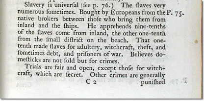 Extract describing the trade in slaves from A short account of that part of Africa, inhabited by the negroes by Anthony Benezet, 1768. (DUL ref: Bamburgh O V 15)